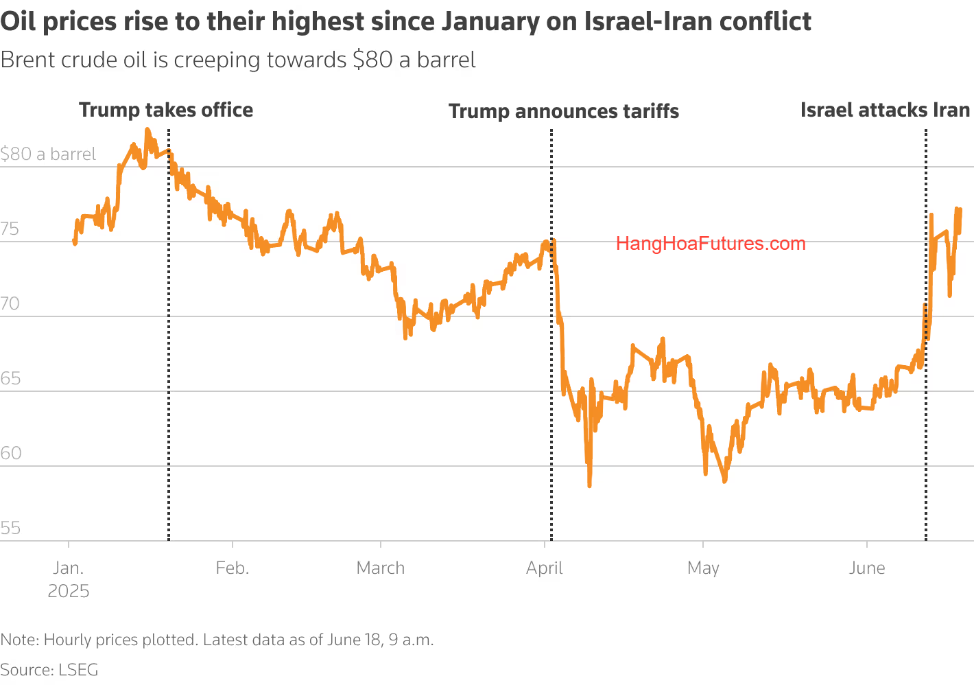 Cuộc chiến giữa Israel và Iran đã châm ngòi cho nỗi lo về khả năng cú sốc nguồn cung dầu mỏ. Giá dầu Brent đã vượt mốc 75 USD/thùng lần đầu tiên kể từ tháng 1.