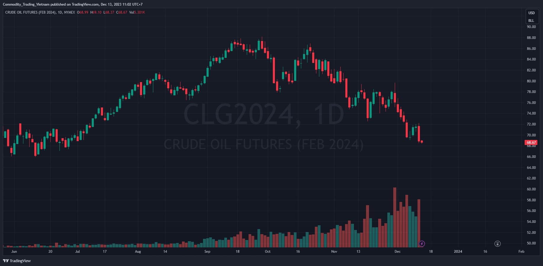 Dầu thô tháng 1 (CLEF24) đã từ chối mức tăng vừa phải ban đầu và chuyển sang giảm điểm mạnh khi đạt mức thấp nhất trong 5 tháng rưỡi trước khi kết thúc phiên giao dịch hôm thứ Ba với mức giảm rất lớn.
