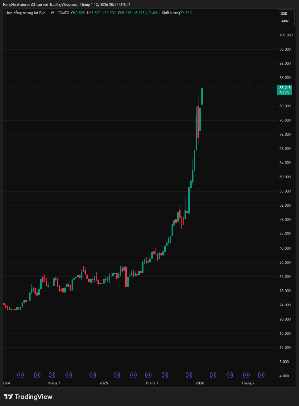 Giá bạc đã chạm mức cao nhất mọi thời đại là 84,60 USD, nối gót đà tăng chưa từng có của vàng trong bối cảnh đồng đô la suy yếu sau khi chính quyền Trump đe dọa mở cuộc điều tra hình sự đối với Chủ tịch Cục Dự trữ Liên bang (Fed). Bên cạnh đó, nguồn cung thắt chặt và nhu cầu cao từ khối công nghiệp cũng là những yếu tố thúc đẩy giá bạc tăng vọt.