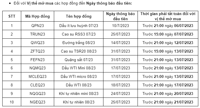 Đối với Vị thế mở mua các hợp đồng đến Ngày thông báo đầu tiên