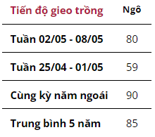 Ngoài ra, tiến độ trồng ngô tại Pháp đạt 80% kế hoạch tính tới ngày 08/05, tăng 21% so với một tuần trước nhưng vẫn chậm hơn mức 90% cùng kỳ năm ngoái và mức 85% trung bình 5 năm.