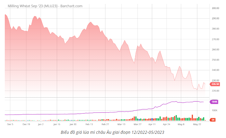 Trái ngược với tình hình tại Mỹ, nguồn cung lúa mì toàn cầu đang trở nên dồi dào hơn, đặc biệt là sau khi thỏa thuận ngũ cốc Biển Đen được gia hạn thêm 2 tháng vào ngày 18/05 vừa rồi, giúp Ukraine có thể tiếp tục xuất khẩu lúa mì ra thị trường thế giới.
