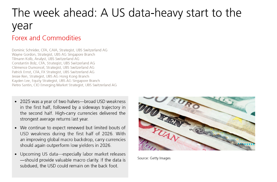 Chúng tôi, UBS, nâng mục tiêu Vàng lên 5.000 USD/oz trong Q1-Q3/2026 do lực mua 950 tấn từ Ngân hàng Trung ương. Tuy nhiên, Bạc mới là "ngôi sao" với mức tăng 148% nhờ lệnh cấm xuất khẩu của Trung Quốc. Ngày 09/01 là thời điểm then chốt để kích hoạt lệnh mua.