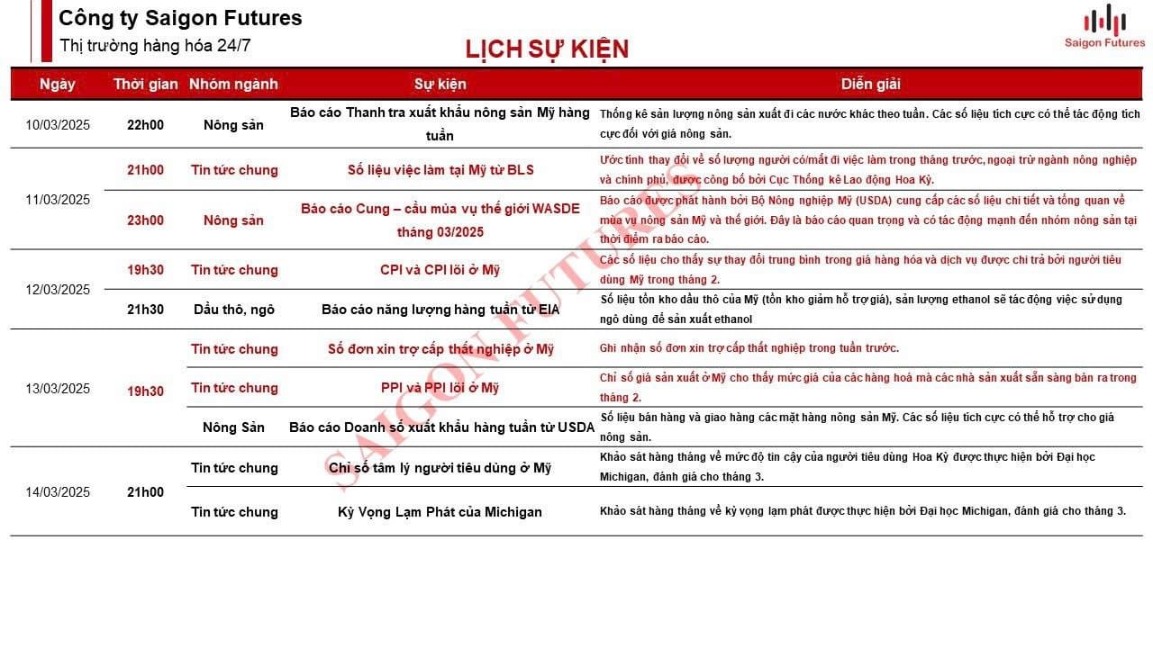 -Lúc, 23h00 (GMT+7) khuya tối nay, thứ Ba ngày 11/03/2025 , thị trường Nông sản (CBOT) sẽ tin tức về Báo cáo Ước tính Cung - cầu mùa vụ thế giới WASDE tháng 03/2025 từ USDA.