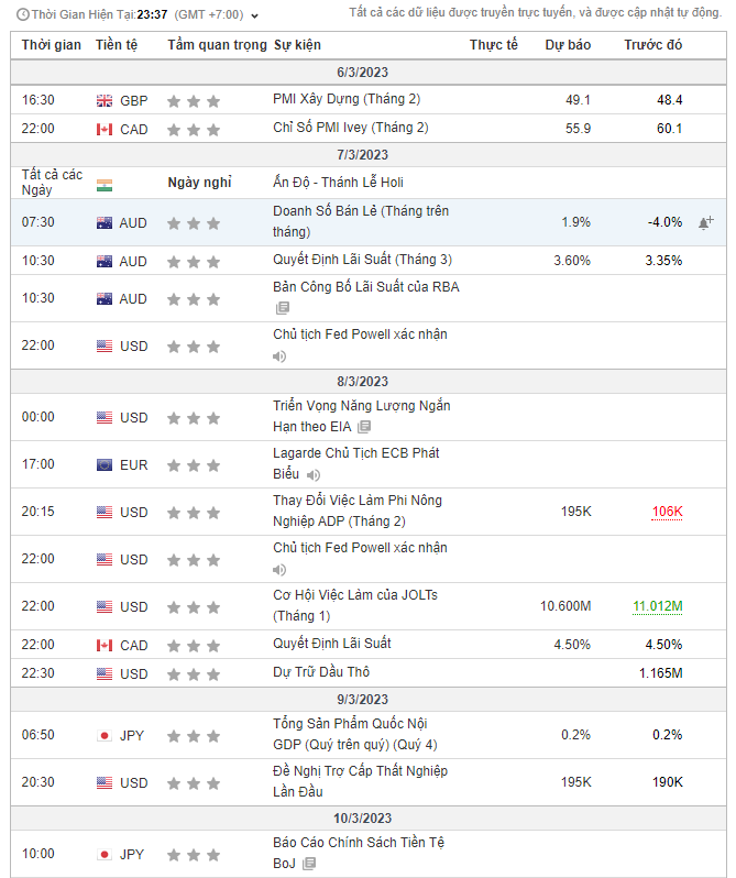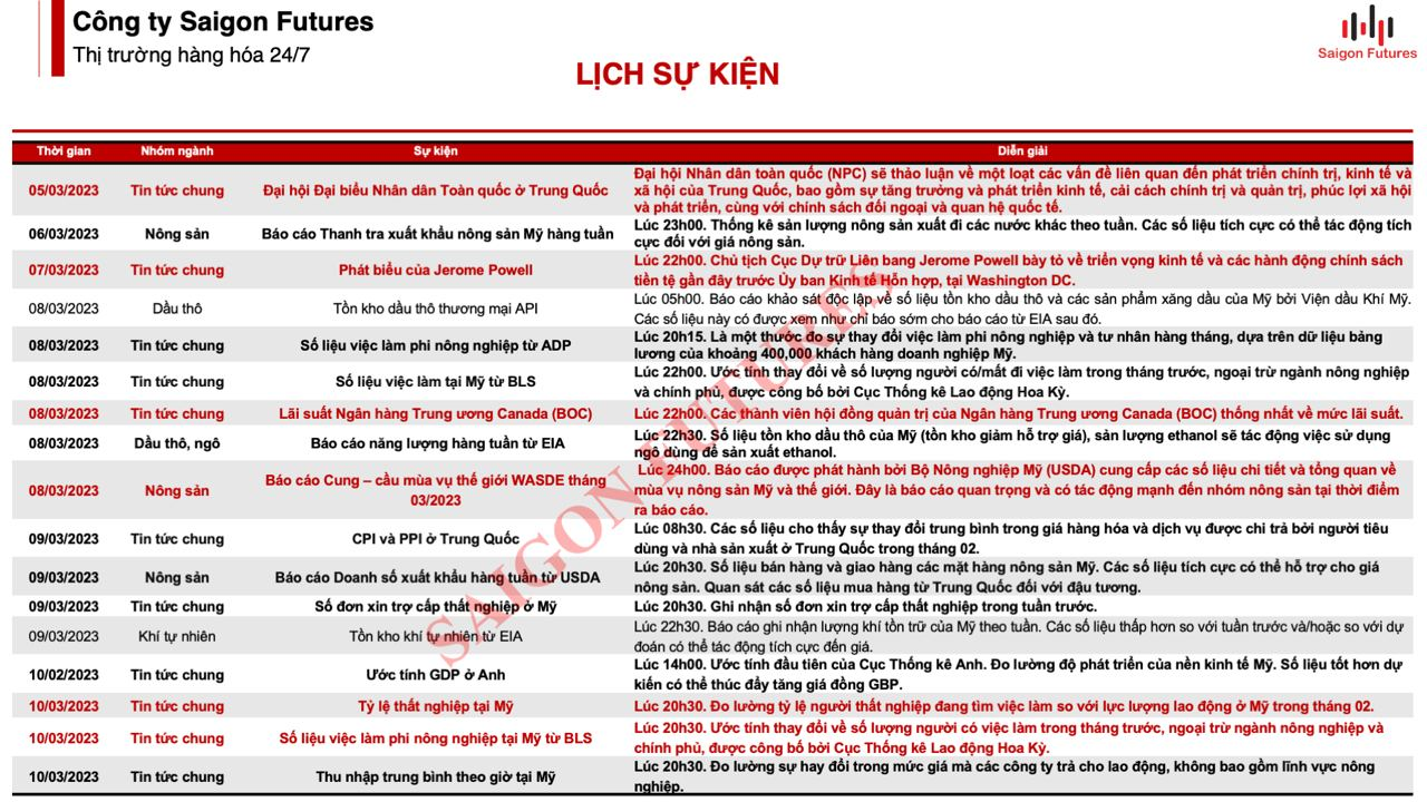 2. Lịch sự kiện giao dịch Hàng hóa: