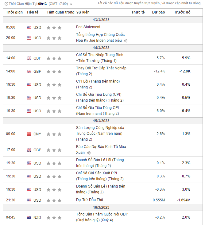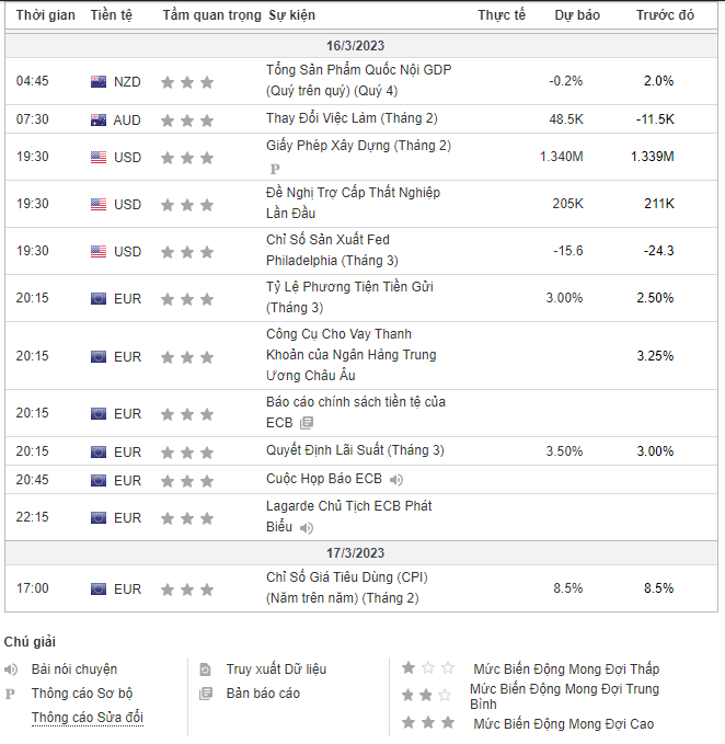 2. Lịch sự kiện giao dịch Hàng hóa: