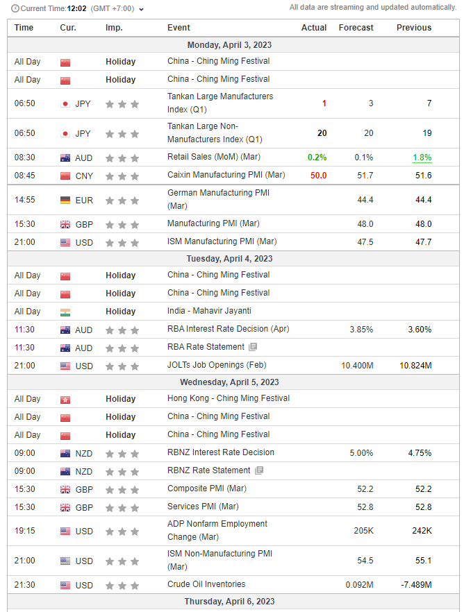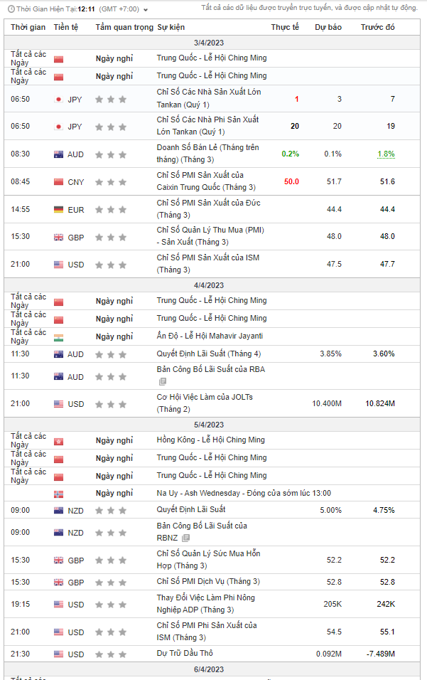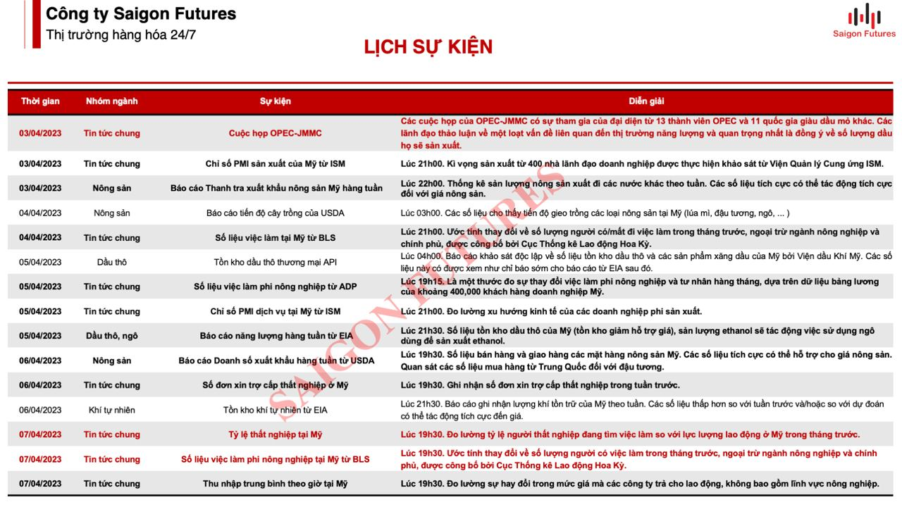 2. Lịch sự kiện giao dịch Hàng hóa:
