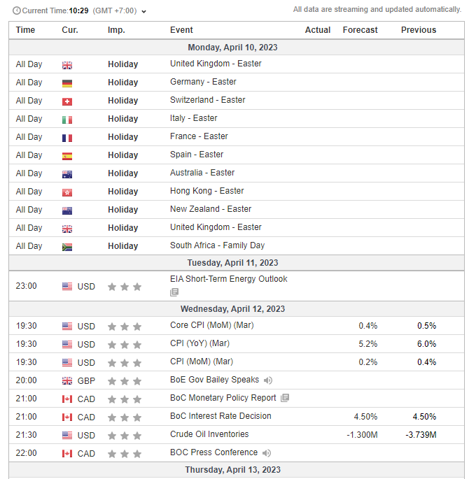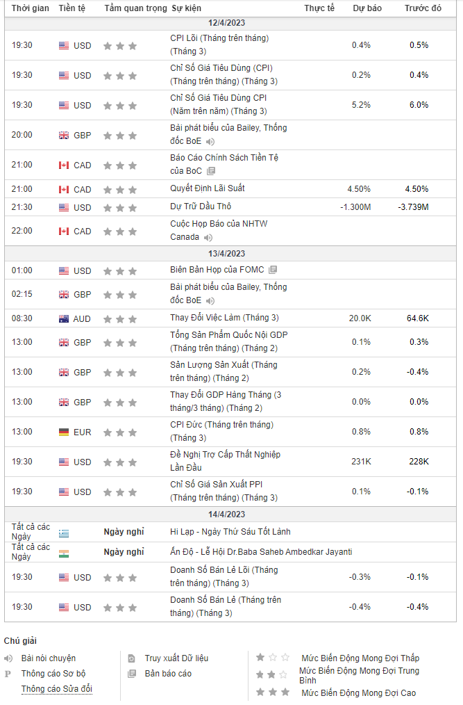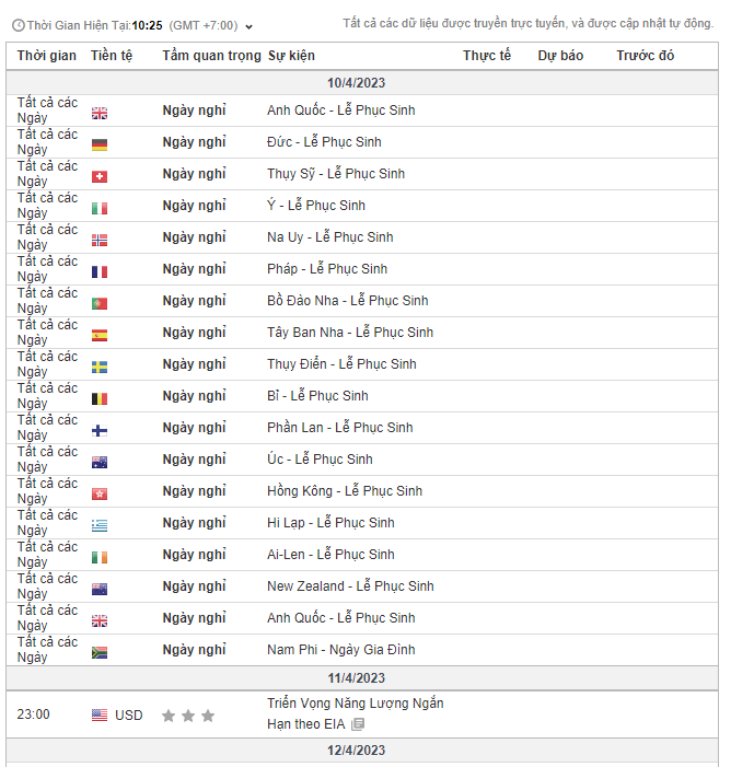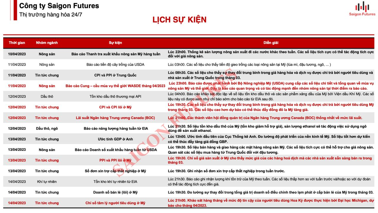 2. Lịch sự kiện giao dịch Hàng hóa: