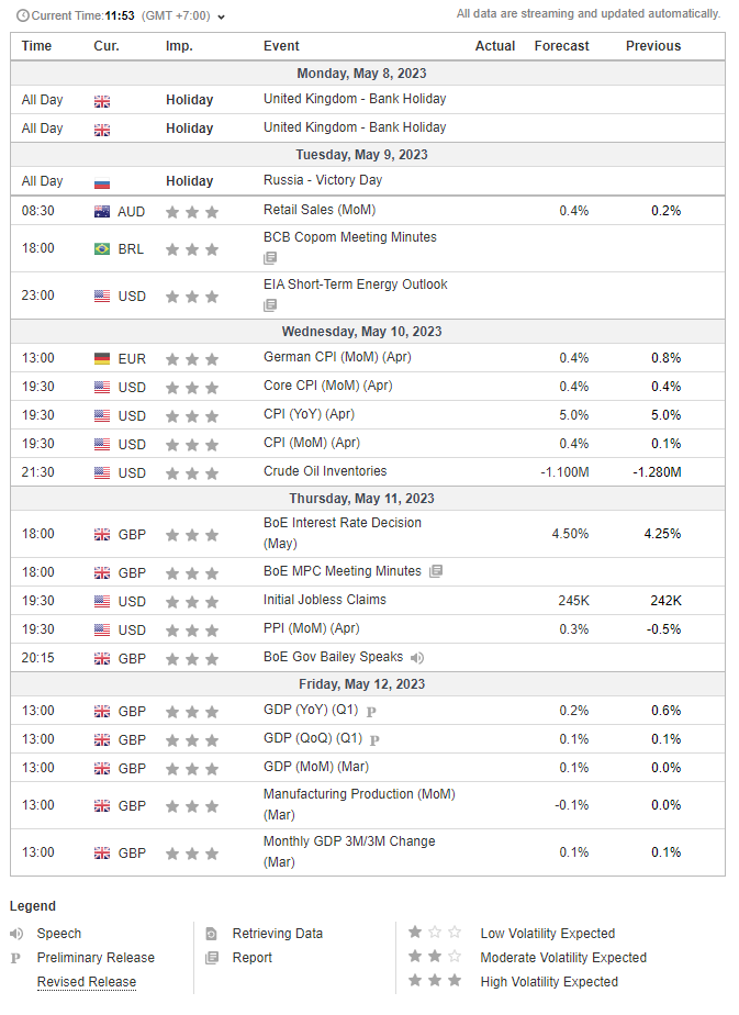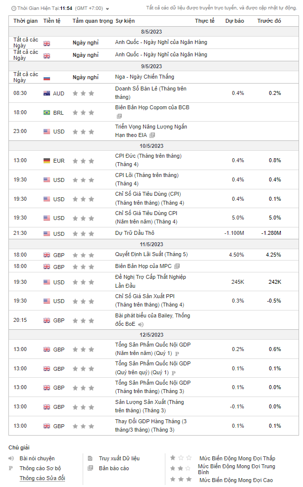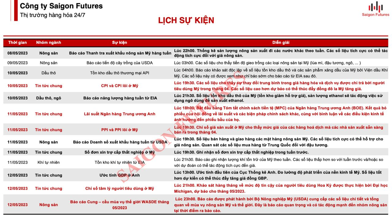 2. Lịch sự kiện giao dịch Hàng hóa: