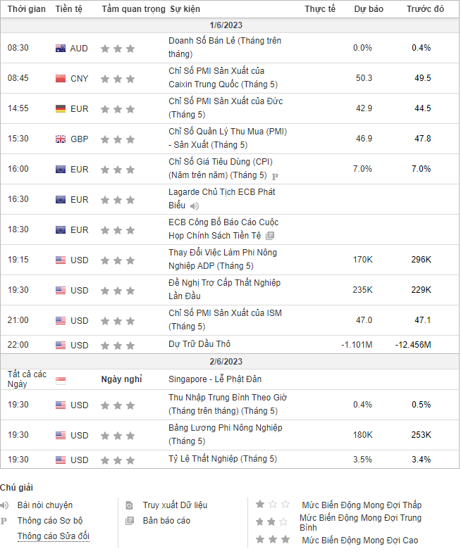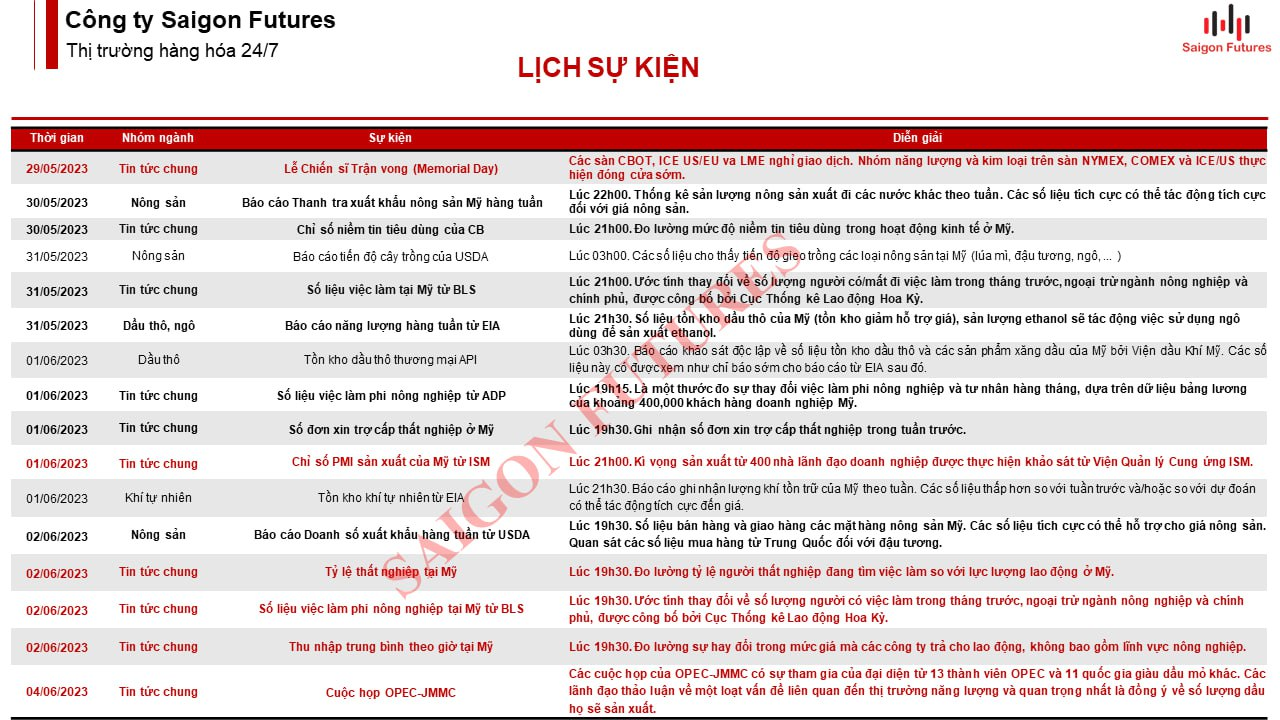 2. Lịch sự kiện giao dịch Hàng hóa: