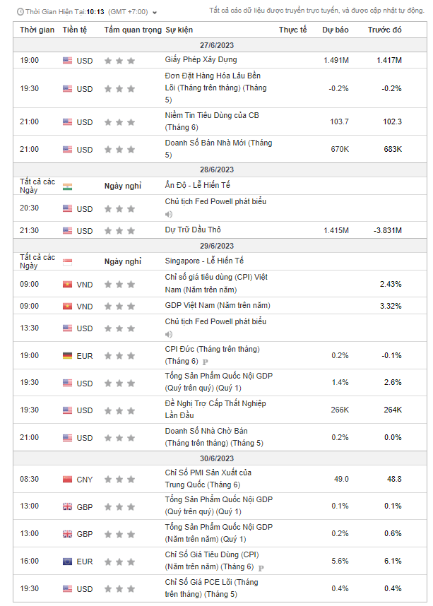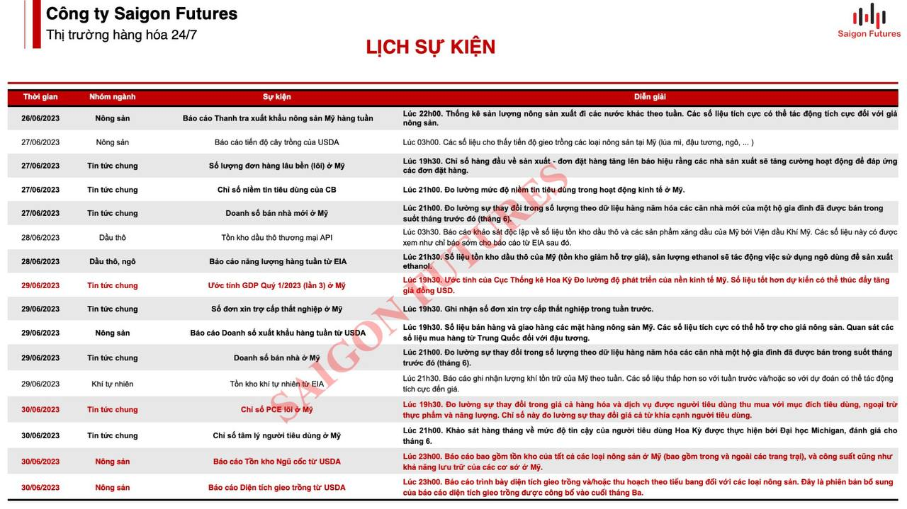 2. Lịch sự kiện giao dịch Hàng hóa: