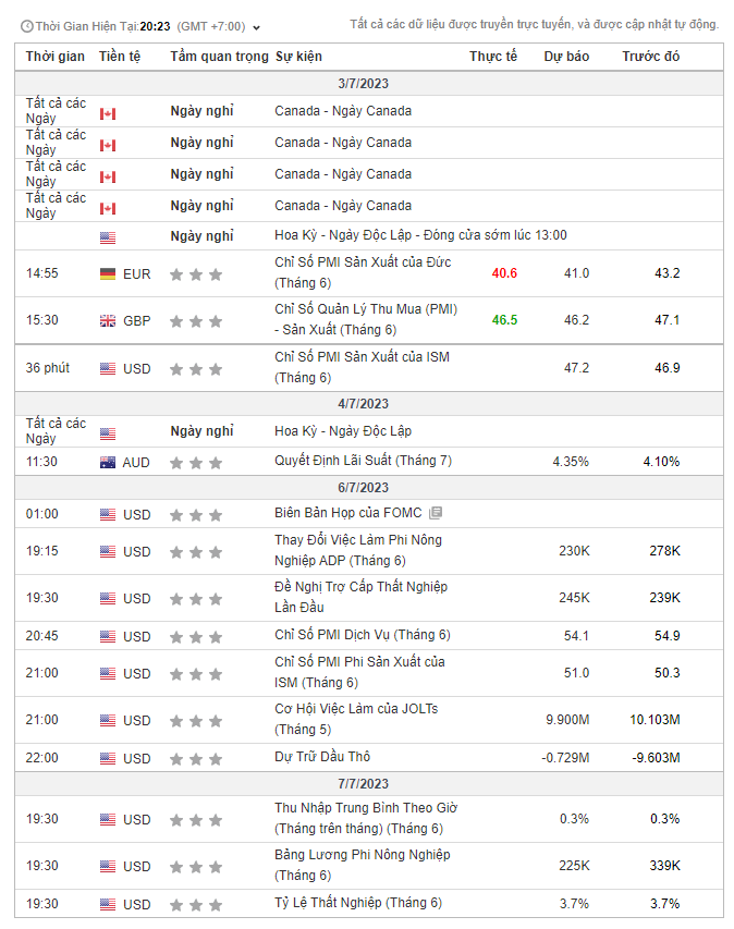 - Lịch kinh tế: