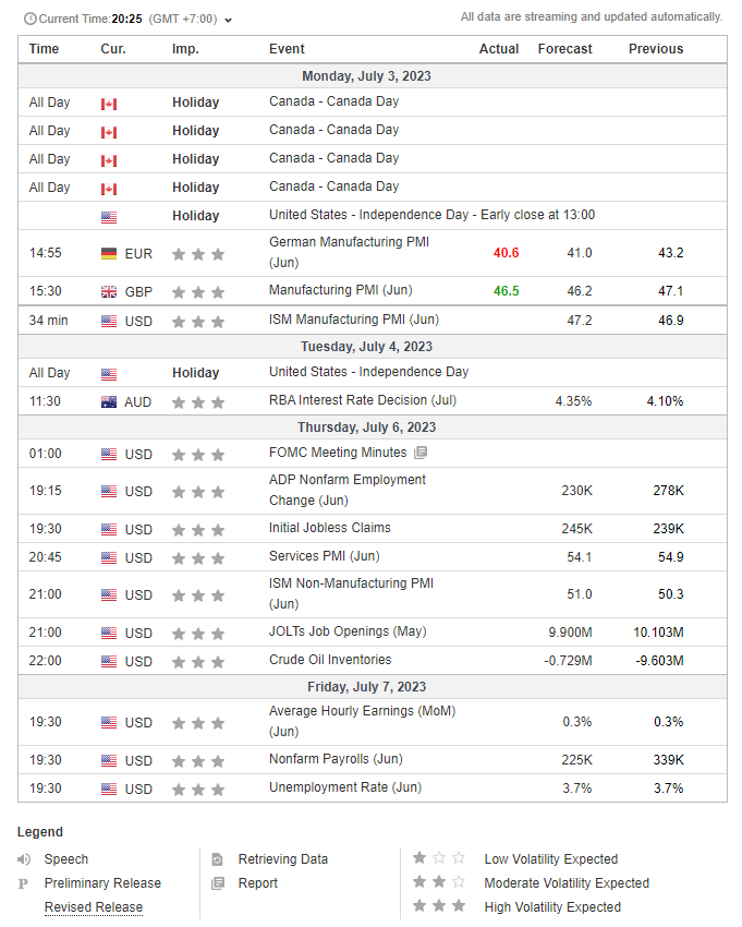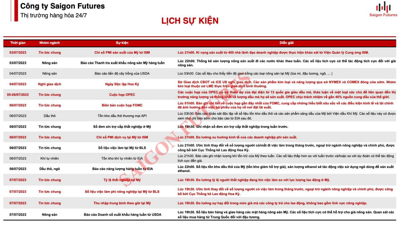2. Lịch sự kiện giao dịch Hàng hóa:
