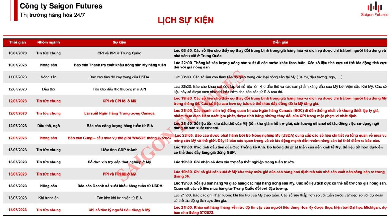 2. Lịch sự kiện giao dịch Hàng hóa: