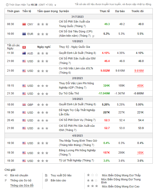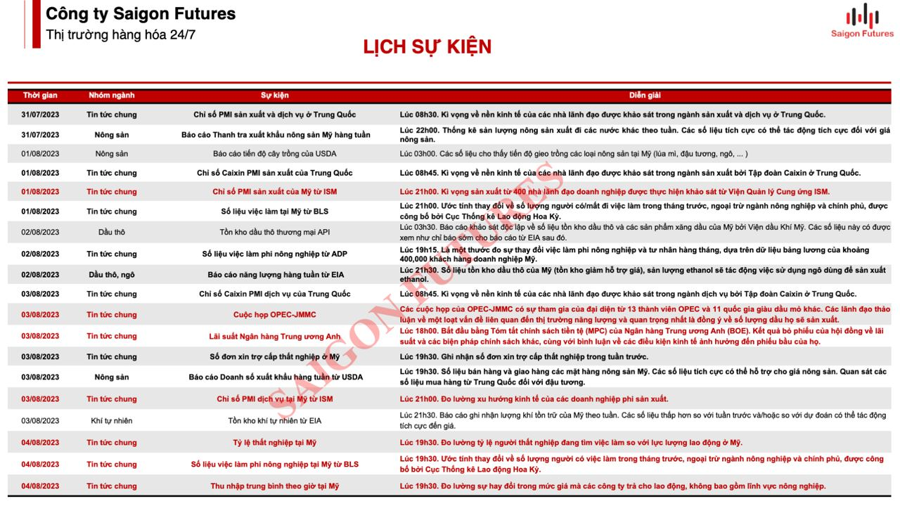 2. Lịch sự kiện giao dịch Hàng hóa: