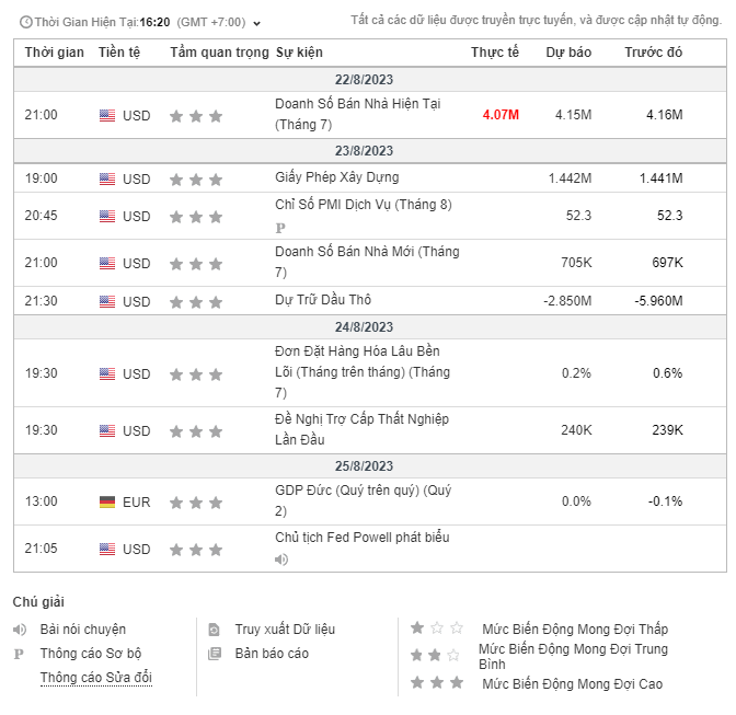 2. Lịch sự kiện giao dịch Hàng hóa: