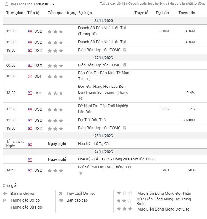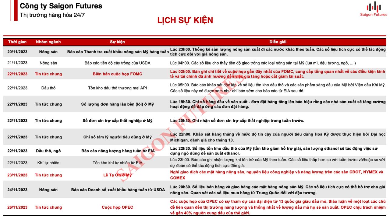 [Economic/Commodity- Calendar 2023] - Lịch Sự Kiện Tuần 47 (20/11- 26/11/2023)