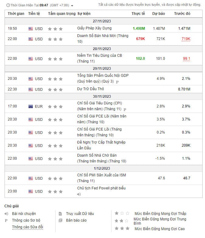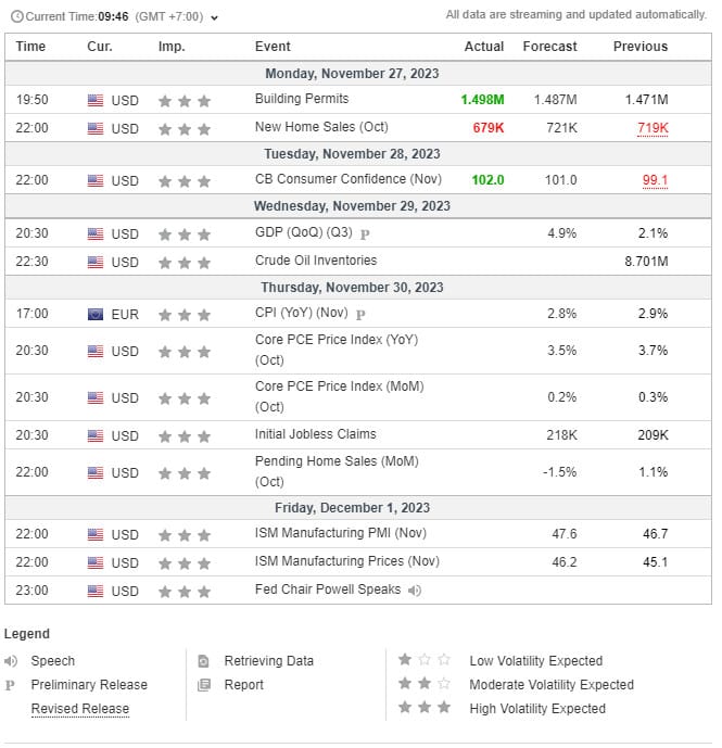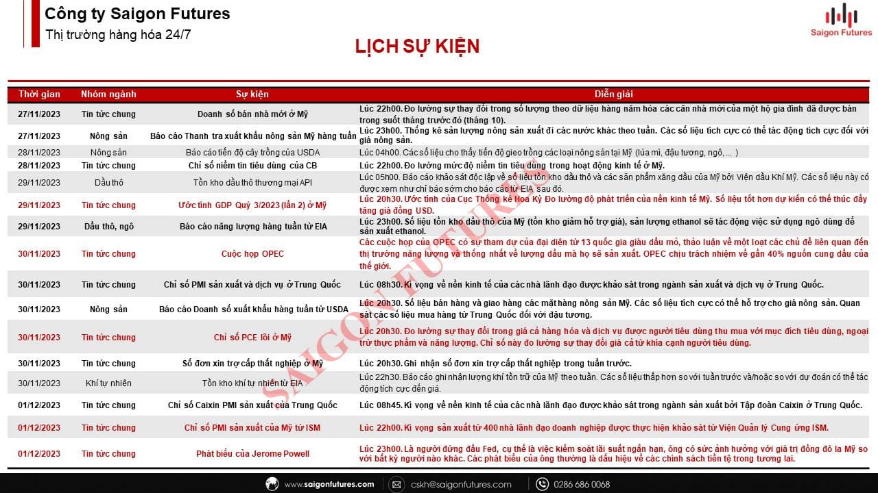 [Economic/Commodity- Calendar 2023] - Lịch Sự Kiện Tuần 48 (27/11- 01/12/2023)