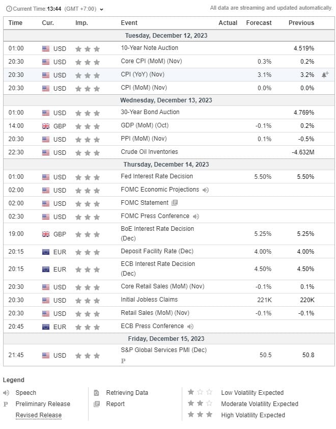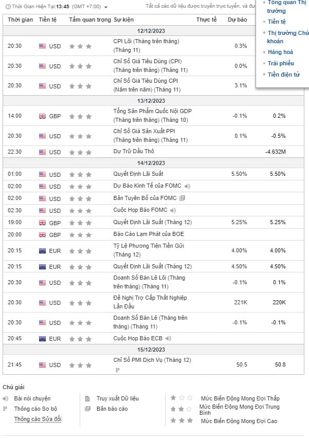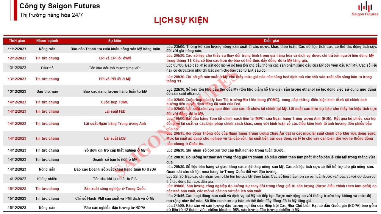 [Economic/Commodity- Calendar 2023] - Lịch Sự Kiện Tuần 50 (11/12- 15/12/2023)