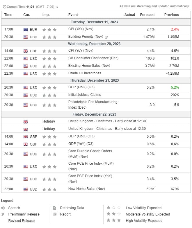 2. Lịch sự kiện giao dịch Hàng hóa: