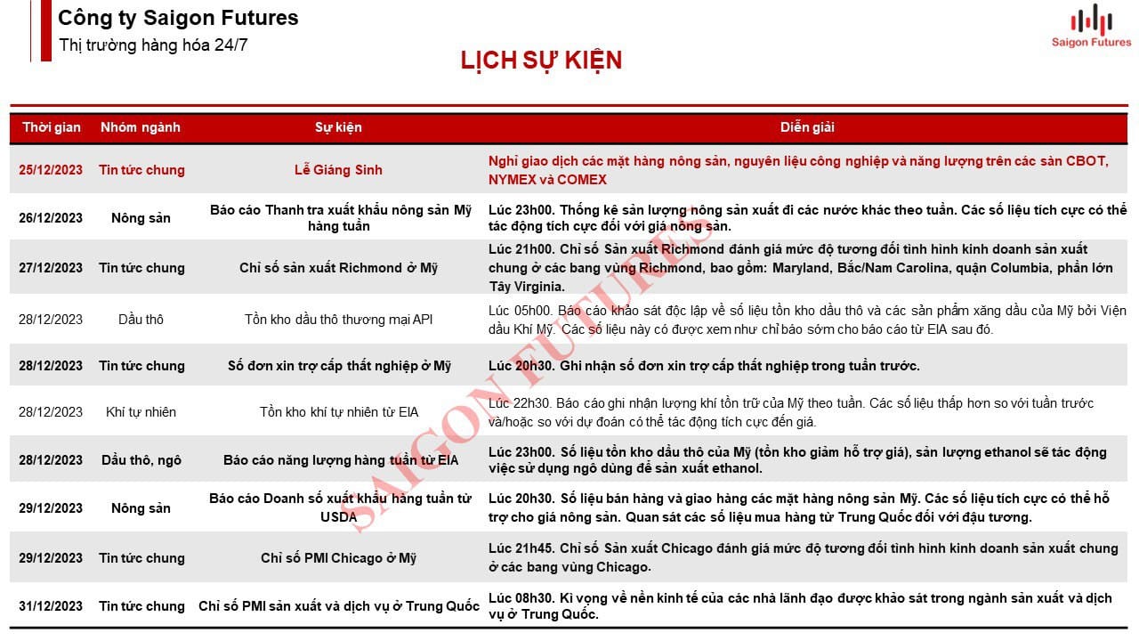 2. Lịch sự kiện giao dịch Hàng hóa: