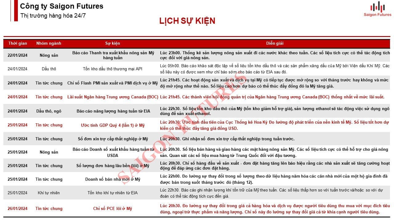 2. Lịch sự kiện giao dịch Hàng hóa: