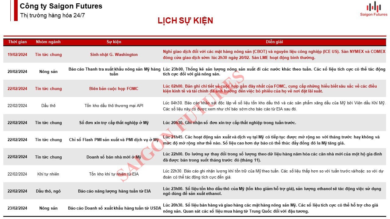 2. Lịch sự kiện giao dịch Hàng hóa: