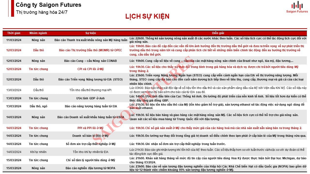 [Economic/Commodity- Calendar 2024] - Lịch Sự Kiện Tuần 11 (11/03- 16/03/2024)
