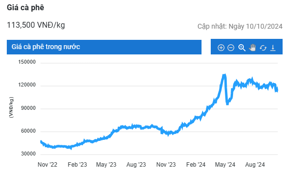 Khảo sát cho thấy, giá cà phê hôm nay tăng nhẹ 100 đồng/kg tại hai tỉnh Đắk Lắk và Gia Lai, giao dịch ở mức 113.500 đồng/kg.