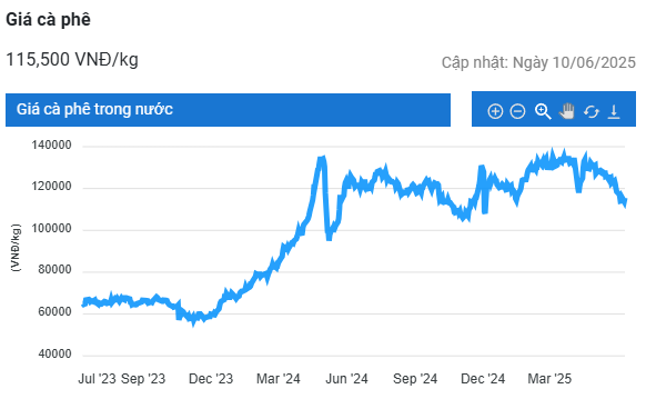 Trong phiên giao dịch kết thúc vào sáng ngày 11/6, giá cà phê trực tuyến robusta hợp đồng giao kỳ hạn tháng 7/2025 trên Sàn London đóng cửa ở mức 4.409 USD/tấn, giảm mạnh 2,5% (113 USD/tấn) so với phiên giao dịch trước; hợp đồng giao kỳ hạn tháng 9 giảm tới 3,01% (134 USD/tấn), xuống chỉ còn 4.317 USD/tấn.