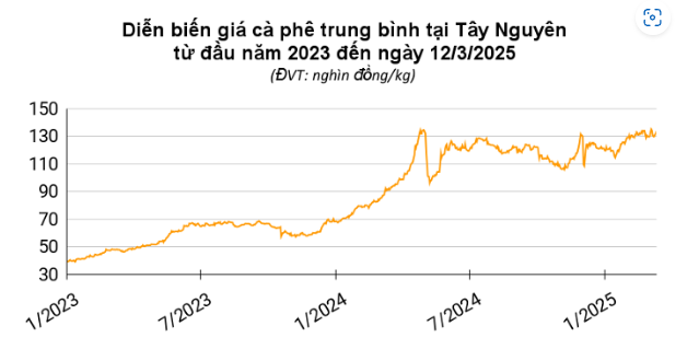 Trong phiên giao dịch kết thúc vào sáng ngày 12/3, giá cà phê robusta tăng 177 USD/tấn và arabica thêm 9,75 US cent/pound. Trên thị trường nội địa Việt Nam, giá giao dịch mặt hàng này cũng tăng từ 2.000 - 2.200 đồng/kg lên gần 134.000 đồng/kg.