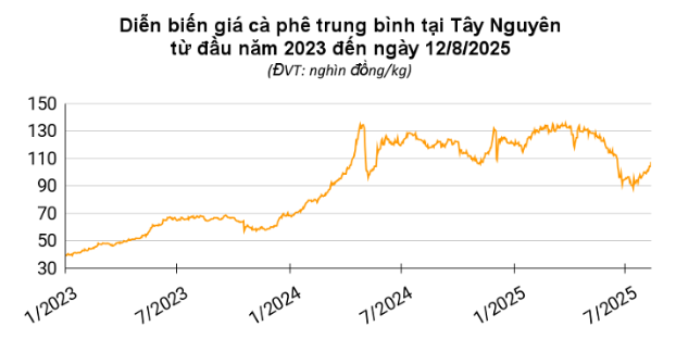 Khảo sát lúc 10h00 sáng ngày 12/8, giá cà phê tại khu vực Tây Nguyên dao động trong khoảng 106.500 – 107.500 đồng/kg, tăng mạnh 2.900 – 3.300 đồng/kg so với ngày hôm qua.