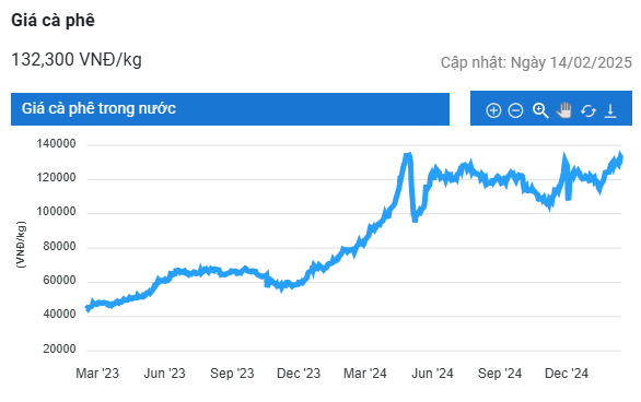 Tương tự, giá cà phê tại hai tỉnh Đắk Lắk và Gia Lai giảm lần lượt 700 đồng/kg và 500 đồng/kg về mốc 132.300 đồng/kg.