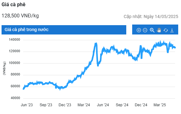 Cụ thể, sau khi điều chỉnh tăng 2.500 đồng/kg, giá cà phê tại hai tỉnh Đắk Lắk và Đắk Nông được thu mua ở mức cao nhất là 128.500 đồng/kg.
