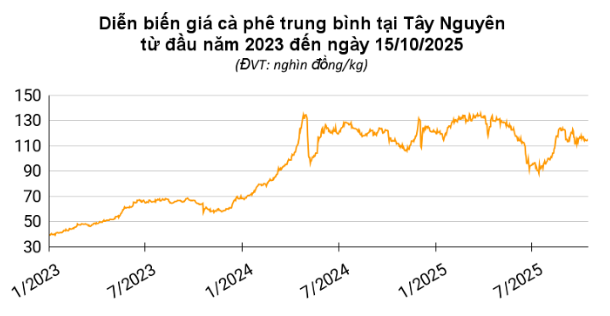Khảo sát lúc 11h00 sáng ngày 15/10, giá cà phê tại khu vực Tây Nguyên dao động trong khoảng 113.000 - 113.800 đồng/kg, giảm 700 - 800 đồng/kg so với ngày hôm trước.