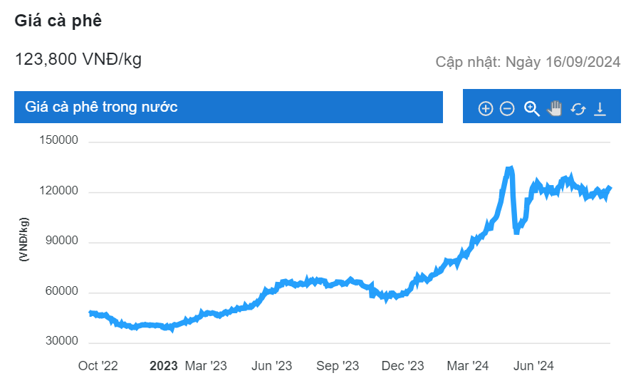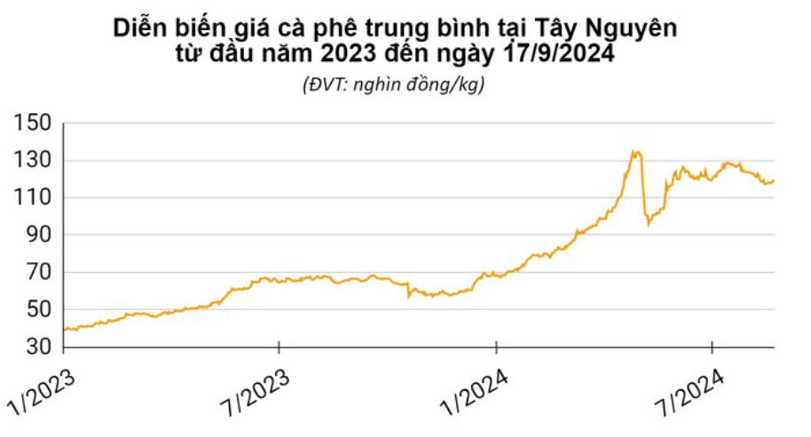 Giá cà phê hôm nay ngày 17/9 giảm nhẹ và dao động trong khoảng 123.500 - 123.800 đồng/kg. Tình hình thời tiết ở hai nước sản xuất chính là Brazil và Việt Nam tiếp tục tác động đến thị trường cà phê kỳ hạn.