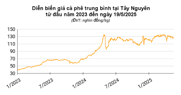 Giá cà phê hôm nay (19/5) tại thị trường trong nước tiếp tục giảm 500 – 700 đồng/kg, xuống còn 123.800 – 124.700 đồng/kg. Năm 2025, sản lượng cà phê arabica của Brazil dự kiến sẽ giảm khoảng 7,5% so với năm trước, trong khi robusta dự kiến tăng 5,5%.