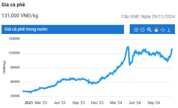 Trên sàn giao dịch London, giá cà phê trực tuyến robusta hợp đồng giao tháng 1/2025 đạt 5.409 USD/tấn, hợp đồng giao tháng 3/2025 đứng ở mức 5.537 USD/tấn.
