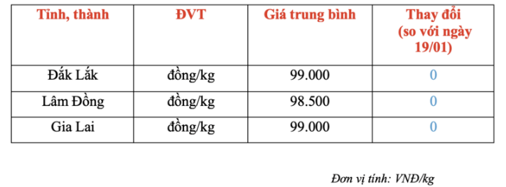 Giá cà phê trong nước hôm nay 20/01: Đi ngang