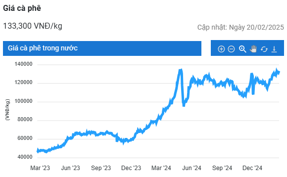 Như vậy, giá cà phê tại thị trường nội địa hiện đã tăng hai ngày liên tiếp và áp sát mức đỉnh lịch sử là 134.200 đồng/kg đạt được vào tháng 4/2024.