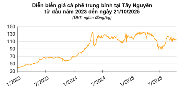 Trong khi đó, các địa phương khác nhìn chung giữ ổn định. Cụ thể, Đắk Lắk và Đắk Nông tiếp tục thu mua ở mức 114.500 đồng/kg, Gia Lai đạt 114.000 đồng/kg, và Lâm Đồng duy trì ở 113.500 đồng/kg.