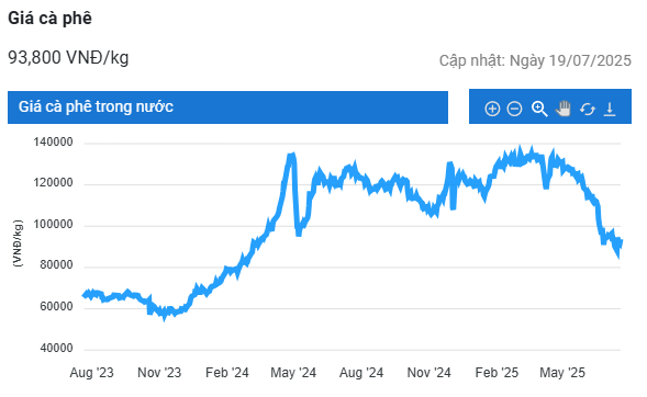 Trên sàn giao dịch New York, giá cà phê arabica giao kỳ hạn tháng 9/2025 tăng tới 6% (17,1 US cent/pound) vào tuần trước, nhưng vẫn thấp hơn 22,6% so với đầu tháng 5, đạt 303,6 US cent/pound.