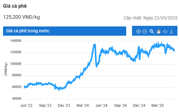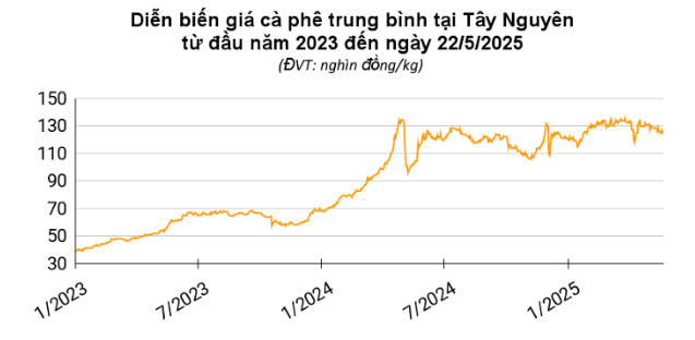 Giá cà phê hôm nay (ngày 22/5) tại thị trường trong nước tăng nhẹ 100 - 200 đồng/kg, dao động từ 124.700 – 125.300 đồng/kg. Trên thị trường thế giới, giá cà phê không có nhiều biến động. Đồng USD suy yếu phần nào hỗ trợ lực mua, song triển vọng nguồn cung dồi dào tiếp tục gây áp lực giảm lên giá.