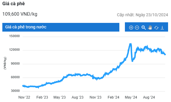 Kết thúc phiên giao dịch ngày 23/10, trên sàn giao dịch London, giá cà phê trực tuyến robusta hợp đồng giao tháng 11 tiếp tục giảm 1,97% (90 USD/tấn) so với ngày hôm qua, xuống chỉ còn 4.487 USD/tấn. Hợp đồng giao tháng 1/2025 giảm 1,73% (78 USD/tấn), về mức 4.425 USD/tấn.