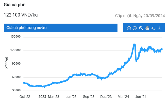 Theo đó, tại tỉnh Đắk Lắk và tỉnh Đắk Nông, giá cà phê đang cùng được thu mua ở mức cao nhất là 120.000 đồng/kg, ổn định so với ngày hôm qua.