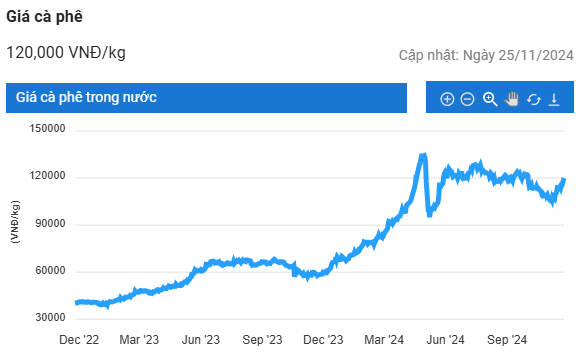 Thị trường ngày mới, giá cà phê hôm nay (25/11) tiếp tục tăng 800 – 1.000 đồng/kg, chạm mốc 120.000 đồng/kg. Vụ thu hoạch tại Việt Nam, nhà sản xuất robusta hàng đầu thế giới, đang tiến triển tốt, nhưng nông dân dường như không vội vàng bán ra.