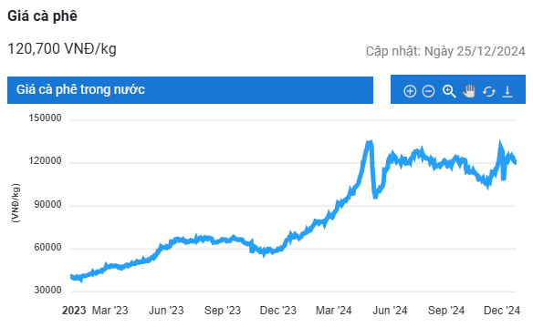 Tương tự, giá cà phê tại tỉnh Đắk Lắk được giao dịch ở mức 121.500 đồng/kg, tăng 800 đồng/kg.