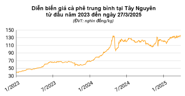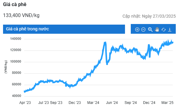 Ghi nhận trong sáng nay (27/3), giá cà phê đồng loạt đi xuống trên các sàn giao dịch, với robusta đóng cửa giảm 154 USD/tấn và arabica mất 6,55 US cent/pound. Ở trong nước, giá cà phê cũng giảm 2.000 đồng/kg từ mức kỷ lục của ngày hôm trước, xuống còn 132.400 - 133.400 đồng/kg.