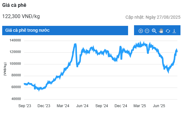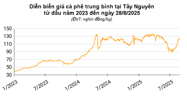 Trong khi đó, giá thu mua tại Lâm Đồng và Gia Lai cùng tăng 1.500 đồng/kg, lần lượt được thu mua ở mức 123.200 đồng/kg và 123.500 đồng/kg.