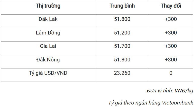 Cùng thời điểm khảo sát, hai tỉnh Đắk Lắk và Đắk Nông giao dịch ở mức 51.800 đồng/kg - cao nhất trong các địa phương được khảo sát.